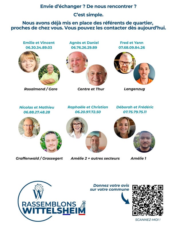Notre projet municipal repose sur une idée simple : Wittelsheim doit se construire avec ses habitants. Trop souvent, les décisions importantes qui engagent l’avenir de la commune sont prises sans véritable consultation. Nous voulons changer cela.